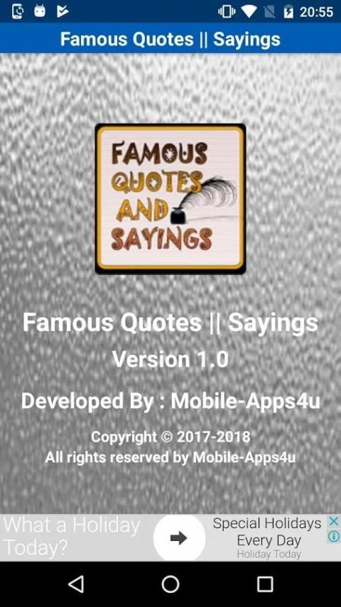 Aplikasi ini koleksi penuh memotivasi kutipan, kutipan kehidupan, kutipan asuransi jiwa, kutipan dalam, kutipan inspiratif, kutipan terkenal, status dan ucapan.