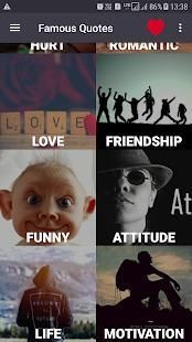 • Baca, berbagi dan menyimpan Quotes oleh orang-orang terkenal, ucapan dan status gratis. Menetapkan status yang baik yang diterima peningkatan seperti pada postingan di dinding Anda dan membaca kutipan inspirasional secara teratur dapat membantu seseorang menjadi lebih sukses, dan memimpin lebih bahagia, kehidupan yang lebih memuaskan. Jika Anda mencari koleksi bagus, inspiratif dan menakjubkan kutipan, ucapan dan status, pencarian Anda berakhir di sini! Anda dapat memilih dari ribuan kutipan besar.