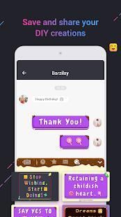 A picture will be generated while typing letters, emojis, emoticons, stickers and special symbols. This fancy keyboard also allows you to change themes. Text will be customized with different keyboard themes. You can create, save and share your amazing text pictures with friends. Use this cool keyboard to chat, you will never feel boring!