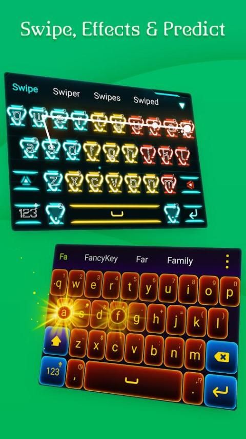 FancyKey Keyboard adalah gratis, keyboard disesuaikan untuk Android dengan font keren, 3200 + emoji, seni emoji, emoticon, tema pribadi, masukan autocorrect dan prediksi kata.