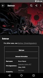 Fandom's app for Batman - created by fans, for fans. The Batman app features many of pages of content created by fans just like you. You can expect to see hundreds of pages of content created by fans just like you. Find articles on characters, comic books, TV shows, movies, videogames, and much more. No other app offers this combination of companion features that allow you to: