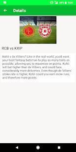Aplikasi ini membantu Anda memilih kombinasi yang terbaik dari pemain Anda harus memiliki dalam tim Anda pada Dream11. Kami juga berbagi beberapa berita yang akan datang tentang permainan juga.