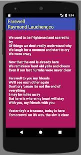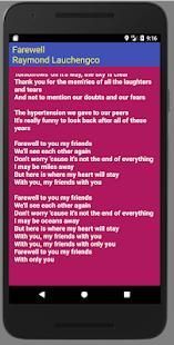 Full lyrics of the song "Farewell (To You My Friend) by Raymond Lauchengco.