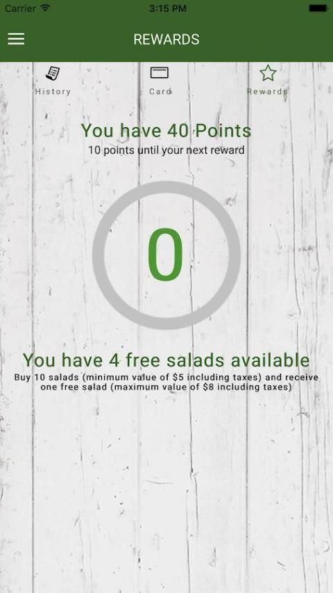 • Salad saya Bar Hadiah: Lihat poin dan penghargaan yang tersedia