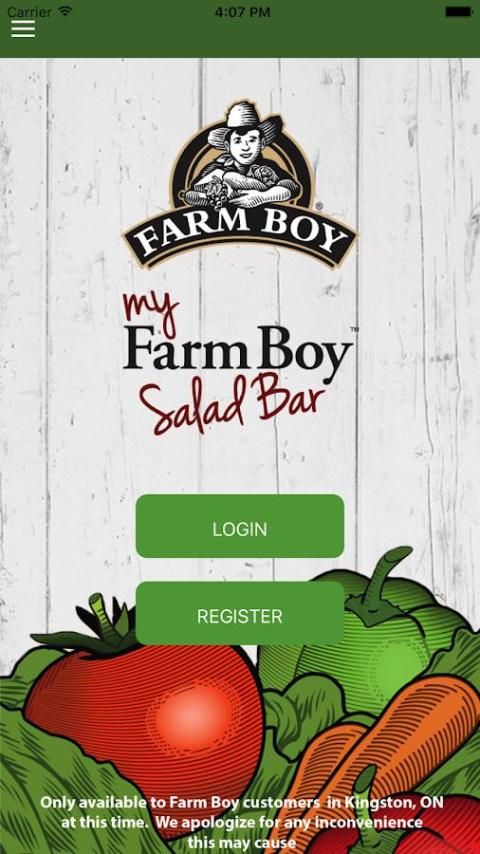 Pejabat My Farm Boy Salad Bar app memungkinkan Anda untuk menggunakan ponsel Anda untuk mendapatkan poin di lokasi pertanian Boy. (Kingston Only)