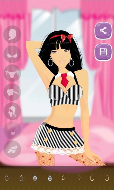 Pilih dari berbagai kategori seperti celana dalam, bra, celana ketat, gaya dengan perhiasan dan aksesoris, mengubah gaya rambut dan menyimpan pic ke perpustakaan foto Anda atau berbagi tampilan seksi dengan teman-teman Anda.