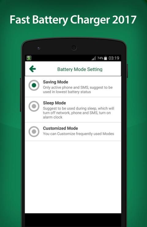 Dengan cepat aplikasi Battery Charger, Anda dapat mengisi baterai telepon Anda 5-10 kali lebih cepat dari charger normal Anda. Ketika Anda mencolokkan pengisi daya ke perangkat Anda Cepat Battery Charger otomatis akan mengaktifkan dan memperbanyak kecepatan proses pengisian. Aplikasi ini memastikan untuk membunuh semua aplikasi lain yang berjalan di latar belakang dan semua aplikasi yang consumea banyak daya baterai karena theusage dari Wi-Fi, Internets seluler 3G, Bluetooth dan jaringan lain untuk meningkatkan laju pengisian. Dan Anda dapat menghubungkan kembali ke semua sinyal ini dan melanjutkan pekerjaan Anda dengan hanya mengklik untuk "berhenti" atau "exit".