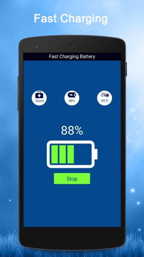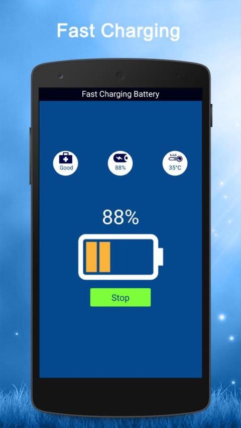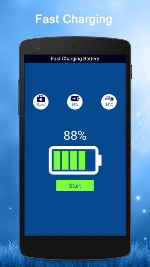 Luncurkan Cepat aplikasi Battery Charger dan plug in charger Anda dalam modus pengisian Terbuka telepon dan klik start untuk pengisian cepat. Baterai Cepat Charger mengurangi jumlah energi yang keluar dari baterai dan oleh karena itu mengurangi waktu pengisian.