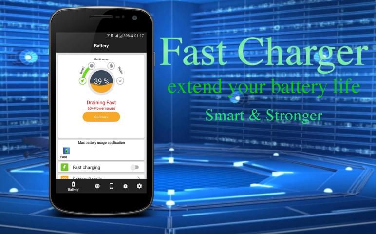 Battery Saver - Charger Cepat adalah hemat baterai aplikasi GRATIS yang membuat baterai Anda lebih lama dan pengisian lebih cepat dari biasanya. Dengan Cepat Baterai Charger Cepat -. Baterai mode manajemen daya pre-set pintar Battery Saver (manajer baterai), kontrol satu sentuhan dan sehat pengisi baterai fitur panggung, Anda dapat memecahkan masalah baterai dan memperpanjang hidup baterai Anda