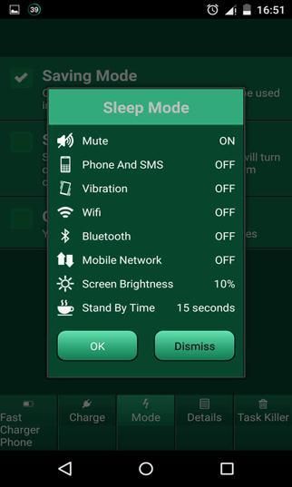 Aplikasi ini menyediakan tiga jenis mode untuk menghemat baterai Anda ketika berjalan rendah.