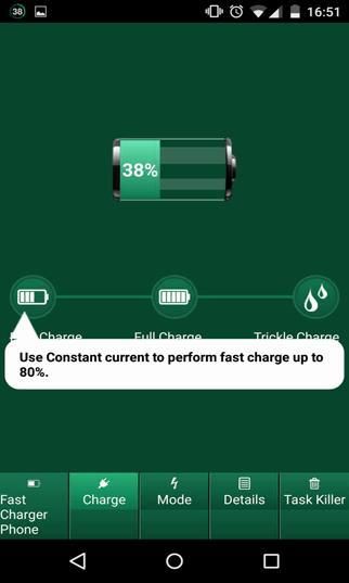 Cepat Charger Telepon Ketika Anda menghubungkan charger Anda, Charger cepat Phone akan mendeteksi dan membatasi konsumsi daya ponsel / tablet. aplikasi membantu Anda menghemat baterai digunakan, jika Anda adalah seseorang yang suka menggunakan. Ponsel, seperti bermain game, mendengarkan musik dan menonton film dan menggunakan baterai di ponsel Anda Kemudian baterai Anda tidak menarik Jadi Baterai Cepat Charger fitur waktu terbaik untuk menghemat baterai ponsel atau tablet Anda. Setiap kali baterai habis, atau terlalu banyak, maka cukup tekan pada aplikasi untuk membuka modus hemat. banyak kekuasaan selama waktu pengisian dan oleh karena itu dapat mengisi sangat cepat. Menurut pengujian kami, ini akan mengurangi waktu pengisian Anda sebesar 20% -40% (tergantung pada perangkat)