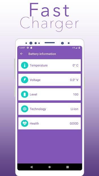 Super Fast Charger a short free application saving chargers that not only helps to increase battery time, but also optimizes device`s performance, not only faster charger, but also to extend battery life. Click on the stop button to end the charge.