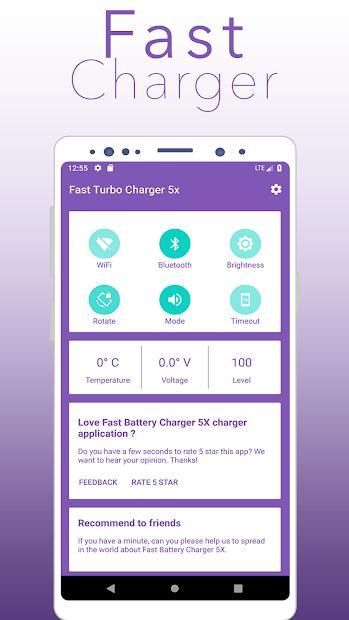 Fast Charger Turbo X5 is an ultimate app, which can boost your battery by 30-40%. APP automatically activate when you connect your charger and it will boost your charging speed.