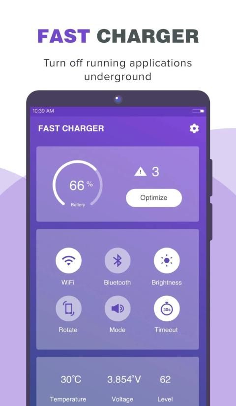 Fast Charger & Battery Saver helps you close all services that consume the battery on a screen. It also contains battery diagnostics to further test the battery's health and finds the battery's health status.