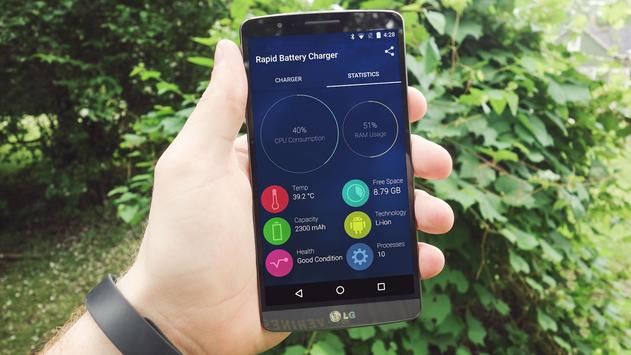 Once the adapter is connected to the device, it charges up the battery as well as that same charge stored is being used by the phone as it consumes the battery. Now, what this app does is that it reduces the ratio of discharging to the charging up of the battery resulting in the reduction of charge time. In addition this rapid fast battery charger does what is vital and performs various functions to reduce the consumption of your machines battery while charging. It stops unwanted background processes to reduce the CPU load and halts network tasks to reduce battery consumption. This battery charger also modifies the display settings according to your needs and to reduce battery usage.