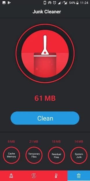 Junk removal notification is introduced which will notify the user when Cache memory , residual files , system junk , temporary files and background running processes are overloaded and slows down the device, then user can activate cleaning process.