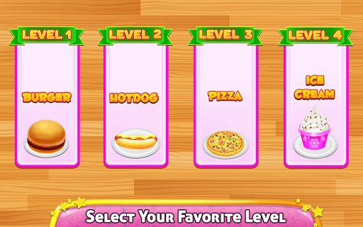 Just try out this new cooking game where you've got a great opportunity to prove your chef abilities by working in a food truck. Come and see for yourself how is like to have your own food truck that serves delicious food and makes its customers happy. You've got more levels incorporated that will test your skills as a cook and a server as well. Begin your challenge with the burger and coffee making where you will be assembling juicy burgers for each of your clients according to their customized wishes. In your kitchen from the truck, you will have some of the ingredients prepared and ready to be used, also in there, you'll have special tools to fry your dishes. Take the orders and try to satisfy your customers by doing exactly that recipe. Once the food is done you have to serve it in time so your client wouldn't leave and will pay you money. Complete the first level and continue to upgrade your meals. As in the first level, you will serve your clients and create a dish they would love, but you will add the hotdogs as a new food. Put on all the ingredients and add some sauce, then have happy customers. The third level comes with pizza and new responsibilities. Also, you will get the chance to see how the ice cream is done and prepared. The final level will let you serve and make gelato. Use different flavors and put on tasty sprinkles on top. Now that you've completed all levels keep training to get your clients the best food and the best time per serving.