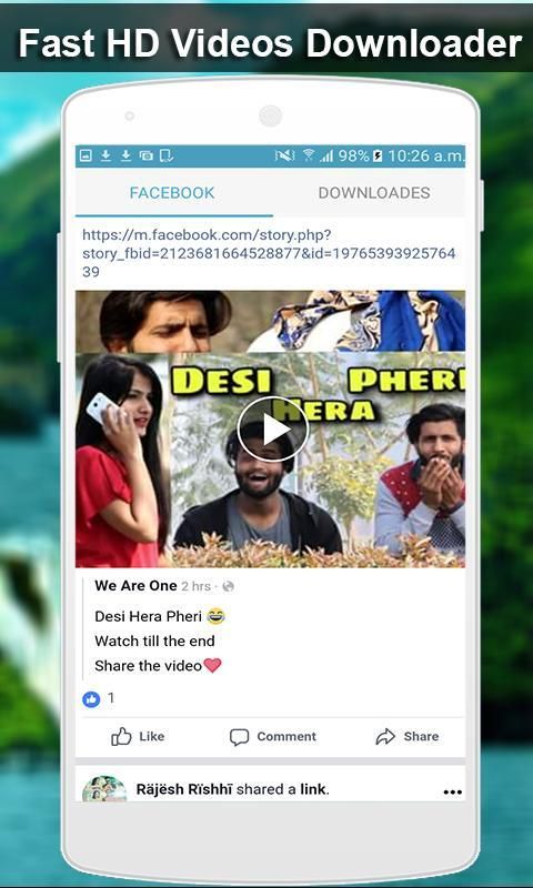 Video Downloader memungkinkan Anda untuk menelusuri akun Anda, berita feed dan teman Anda atau halaman dinding dengan menggunakan built-in browser yang memungkinkan Anda untuk memilih video yang ingin Anda download dan menyimpannya sehingga Anda dapat memainkannya nanti atau berbagi dengan Anda teman-teman melalui berbagai apps.Also memeriksa koleksi kami dari video lucu. Install Video Downloader untuk menyimpan video ke galeri dan mulai berbagi videos.Download video Menyenangkan dan lucu membentuk wajah yang Anda sukai dan menonton mereka secara offline.