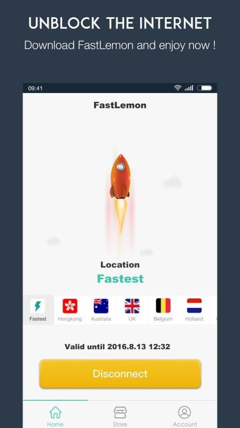 Coba FastLemonVPN hari, gratis penggunaan pengguna baru 500 MB.