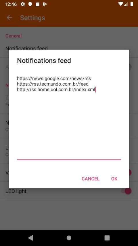 - No feed? Put Google News to test the app, Google Feed is: https://news.google.com/news/rss