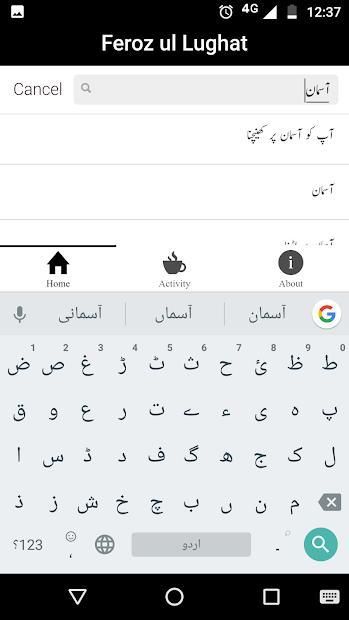 1. Kata-kata dan idiom dapat dicari langsung menggunakan keyboard Urdu