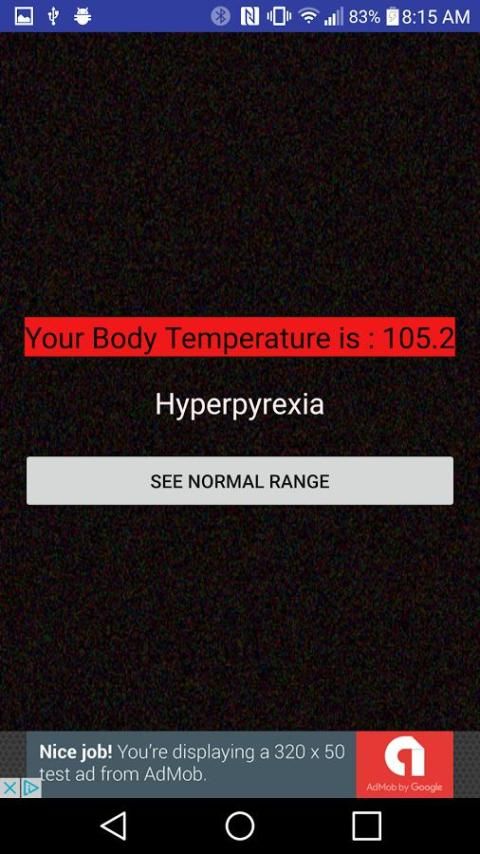 Peringatan: Ini adalah aplikasi lelucon yang tidak menghitung suhu tubuh Anda yang sebenarnya. Ini hanya demam menyenangkan cek termometer aplikasi. Gunakan perangkat termometer nyata untuk memiliki pembacaan yang akurat dari suhu tubuh Anda.