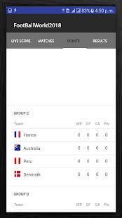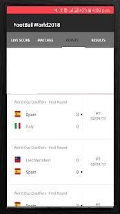 Points tab is about details of Fifa World Cup teams groups and points and standings of world cup teams. You can see it in more details by selecting any group in list. Results shows all results of matches and news. All information is updated instantly you don’t need to update or refresh or wait for update.