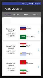 Dapatkan siap untuk tinggal diperbarui untuk terbesar 2018 Piala FIFA Dunia digelar di Rusia. Pada aplikasi untuk membuat Anda diperbarui dengan semua yang Anda perlu tahu tentang FIFA World Cup, Hidup Scoring, waktu dan tanggal pertandingan, Jadwal, Jadwal, Status Match, Stadion Pertandingan, Grup, Tim Poin, Berita dll