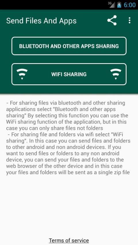 Mengirim file melalui WiFi, Bluetooth atau aplikasi lainnya. Anda dapat mengirim file ke perangkat non-android (menggunakan Wi-Fi) dengan mengirimkan file dan folder sebagai file zip tunggal untuk browser internet dari perangkat penerima. Anda juga dapat mengirim file ke perangkat android dan menerima mereka menggunakan aplikasi ini.