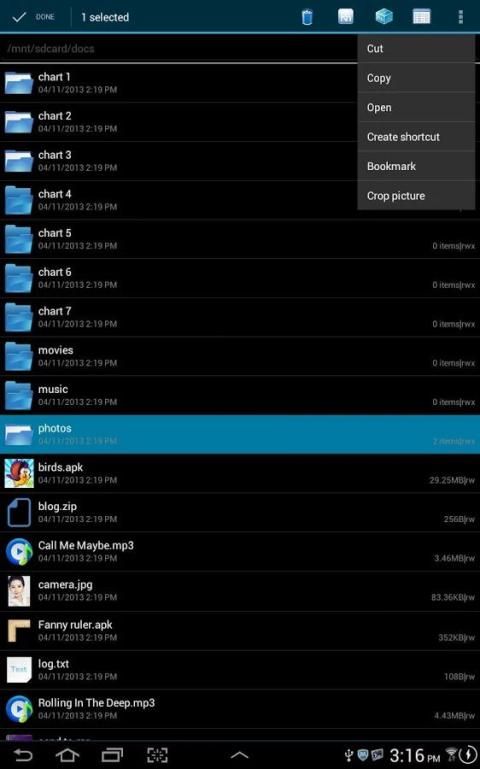 * Support for files and folders, cut, copy, rename, create a new folder operation, the basic functions of file manager