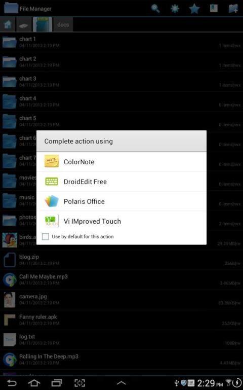 * File Manager can call the application opens a file on your phone