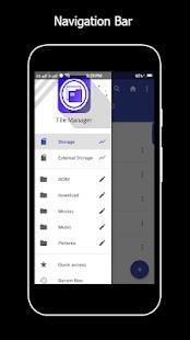 - Easy record perusing: Browse documents effectively by class ideal from File Manager's home screen: pictures, recordings, music, applications, downloaded, and top picks.
