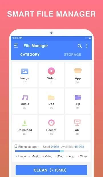 File Manager gratis, sangat mudah digunakan dengan pengatur file berdasarkan kategori: Gambar, Musik, Film, Dokumen, Aplikasi, ...