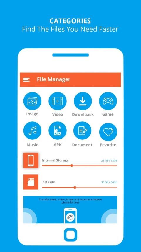 File manager app is free, really easy to use with file organizer by category: Images, Music, Movies, Documents, Apps,...