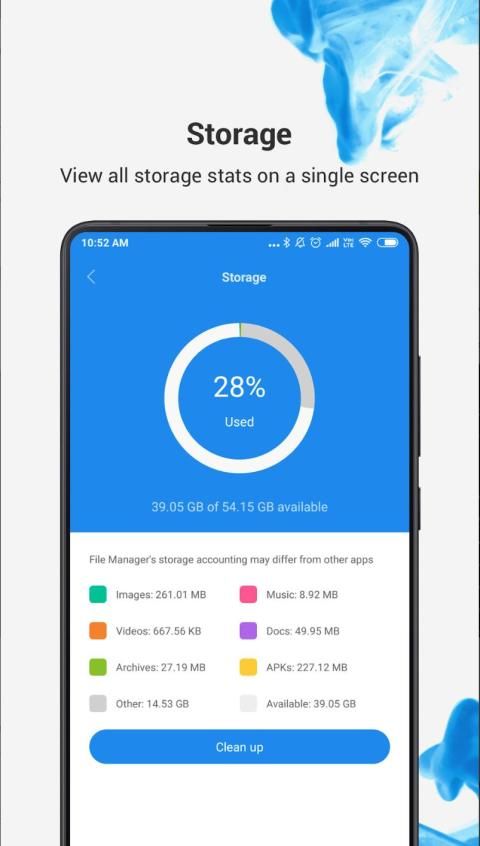 Anda selalu dapat mengetahui penyimpanan ponsel Anda, berapa banyak digunakan dan berapa banyak yang tidak digunakan. Selain itu, Anda dapat menelusuri dan mengedit semua file folder dengan remah roti di atas.