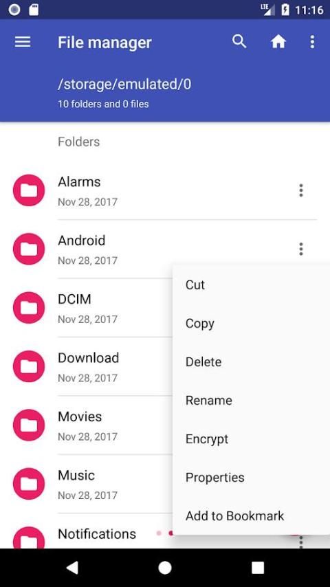 Secara default, File Manager memungkinkan Anda untuk menyalin, memindahkan, mengubah nama, menghapus atau berbagi file ke dan dari salah penyimpanan Anda. Hal ini juga memungkinkan Anda mencari dan mengakses file Anda berdasarkan kategori.