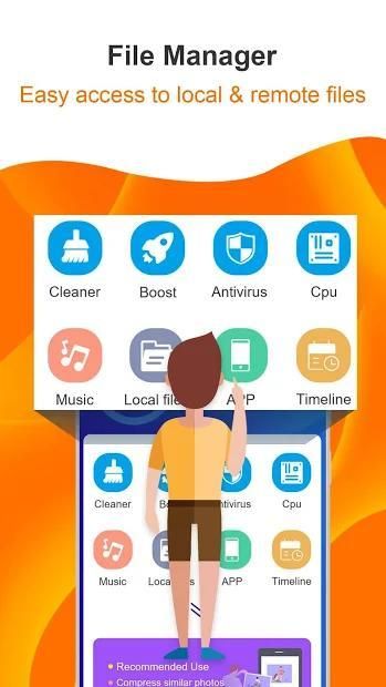 File manager adalah program manajemen file yang kuat, yang memungkinkan Anda untuk bekerja dengan file yang Anda butuhkan dalam antarmuka yang intuitif. Ini juga mendukung media dan file umum dalam berbagai format, dan memprosesnya hanya dalam beberapa klik. Video, video, dokumen, dan hapus salinan, konversi dan kompres file, yang menampilkan informasi mendetail tentang ruang yang ditempati, oleh perangkat, dan memberi Anda kiat yang relevan untuk memberi tahu Anda konten mana yang dapat dihapus dan dibersihkan, memungkinkan Anda untuk segera merilis Ruang penyimpanan internal atau eksternal.