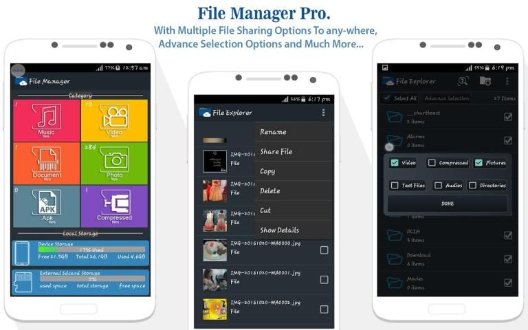 Berkas Manager Pro. Membantu Anda Untuk Mengelola Semua File Anda Mudah Dengan New Windows Explorer Style.It Memungkinkan Anda Untuk Menangani File Anda dan Folder Apa-mana Dari Storage Device dan Micro-SD Card Storage.External USB juga didukung Anda Bisa Jelajahi, Copy, Memindahkan atau Hapus data Anda dengan Menghubungkan USB flash drive Untuk Ponsel dengan OVG Cable.File Manager Pro. sangat Mudah Gunakan itu gratis file manager dan File Explorer gratis Dengan Banyak Features.It Menyediakan Anda bagus Kategori View Untuk Semua File Jadi Anda Jelajahi Mudah Dan Fast.It juga Menyediakan Muka Seleksi Pilihan Dengan Yang Anda Bisa pilih File Anda Mudah dan Benar di Much Way.It Cepat Memungkinkan Anda Untuk Salin, Ubah nama, Hapus, Cari, Share dan Jelajahi File dalam Way.It Sangat Efisien adalah Sangat Smart File Explorer dengan yang Anda Bisa Jelajahi Segala Jenis Media Berkas seperti Video, Audio, Foto Anda Bisa Jelajahi Dokumen, Compressed File, Zip dan Rar Files.You Bisa Berbagi Mudah Pada Social Media Share dengan Bluetooth atau dengan teman-teman Anda Hanya Dalam Satu Click.It Menangani Folder Anda efisien Anda Bisa Tambah Folder Baru Untuk Anda Storage.It adalah Sangat Ringan dan Savvy file Explorer dengan Its Mudah dan Fitur keren ini Meningkatkan Mobile file Menjelajahi Speed.You Bisa Explorer Mudah Connected Cerdas Storage Device Anda dan dapat memeriksa mereka tersedia dan Bekas Storage.Experience dan Nikmati Fitur berguna Dari Berkas manager Pro. untuk Free.And Mengelola File Anda Efisien.