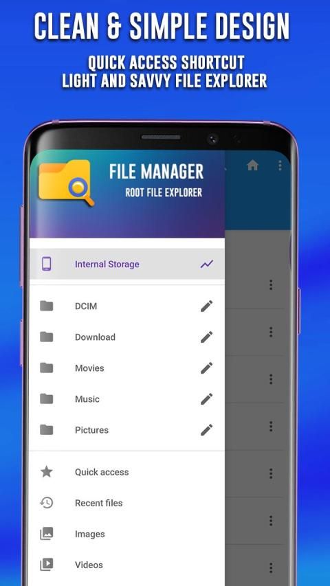 File Manager (Root File Explorer) is extremely easy to use, you can easily explorer your sdcard or phone internal memory files, media, audio, and folders, connect with FTP Server and access files securely with desktop or laptop. File Explorer supports all media files and major file formats including apk, pdf, mp3, mp4, rar, zip with file manager cleaner.