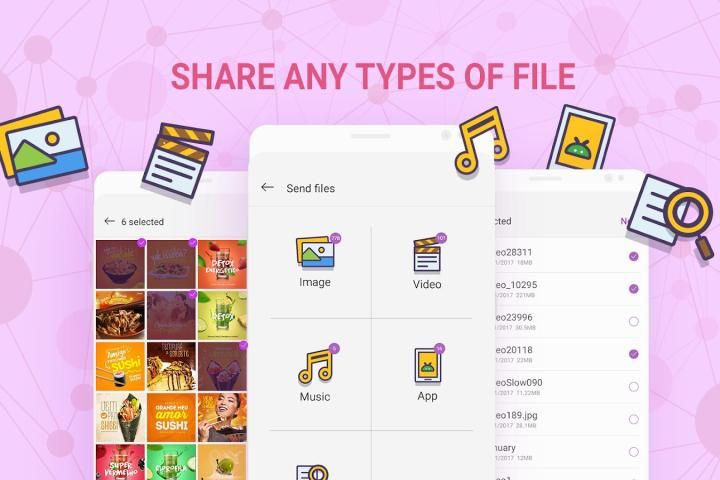 Upload apa pun yang Anda ingin berbagi file: teks, gambar, video, kontak, musik, aplikasi, dan melakukan berbagi video, berbagi foto .... tanpa kesulitan.