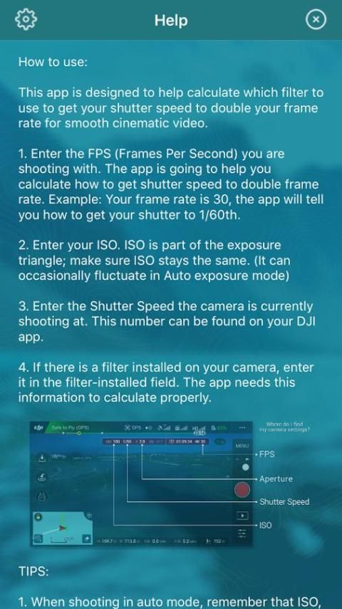 The PolarPro Filter Kalkulator adalah alat yang nyaman yang membantu sinematografer untuk cepat menemukan filter yang benar untuk mendapatkan kecepatan rana yang dekat dengan menggandakan frame rate mungkin. Cukup pasang di ISO, kecepatan rana, dan FPS ke kalkulator untuk menentukan apa filter paling cocok untuk kondisi cahaya Anda saat ini. Untuk kemudahan penggunaan, kalkulator memungkinkan Anda pasang di variabel tersebut dengan atau tanpa filter sudah terpasang, sehingga Anda dapat memilih filter yang membuat Anda sebagai dekat dengan aturan 180 derajat shutter tanpa sakit kepala. Filter Kalkulator dirancang untuk digunakan dengan drone tetapi dapat juga digunakan dengan kombinasi kamera dan filter untuk menangkap video berkualitas sinematik halus mungkin.