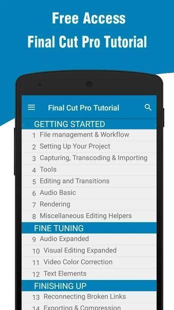 Final Cut Pro Tutorial app will guide you through the new features of Final Cut Pro to help you easily learn. And practice