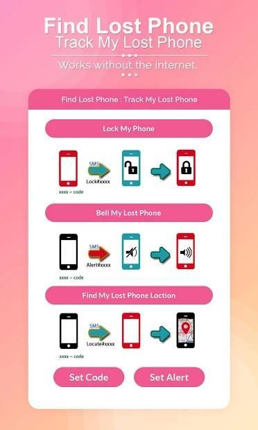 Fitur utama dari aplikasi ini adalah menemukan telepon dicuri Anda tanpa koneksi internet. Anda hanya perlu mengatur nomor kontak teman atau keluarga terpercaya Anda dalam pengaturan anti-sesat dan mengatur SMS Notifikasi kustom Anda.