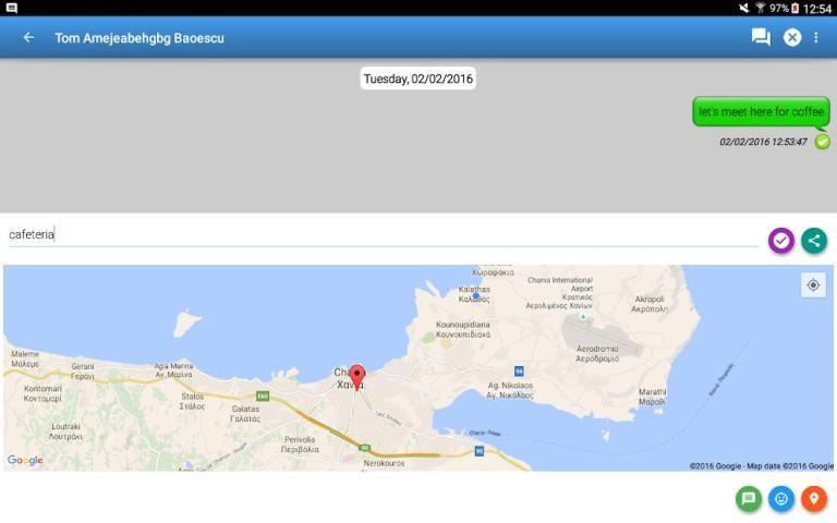 8. Powerful chatting; send messages, stickers and locations!!