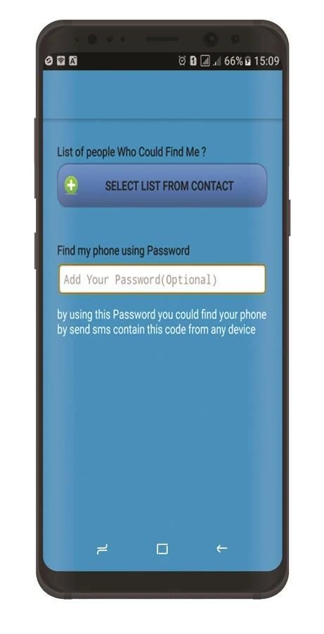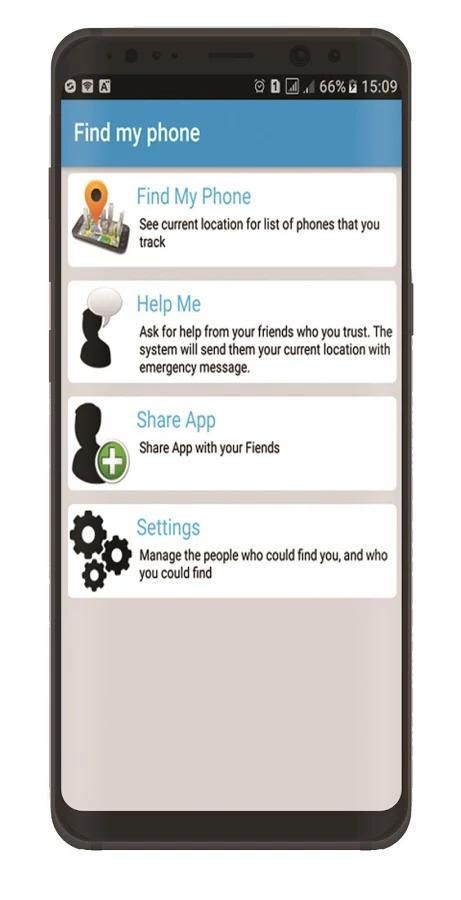 Aplikasi ini memungkinkan Anda untuk menemukan ponsel Anda atau untuk menemukan perangkat Anda menggunakan dan alat pelacakan penting bagi siapa pun, teman atau telepon keluarga (saya finder telepon), sehingga Anda harus memilih daftar orang yang Anda ingin untuk memungkinkan mereka untuk menemukan telepon Anda, dan daftar perangkat yang terhubung ke ponsel saya, bangsa yang Anda akan menemukan mereka, Anda juga bisa menemukan Anda telepon dari perangkat apapun yang tidak memiliki aplikasi ini dengan mengirimkan SMS berisi password pribadi Anda ke telepon Anda