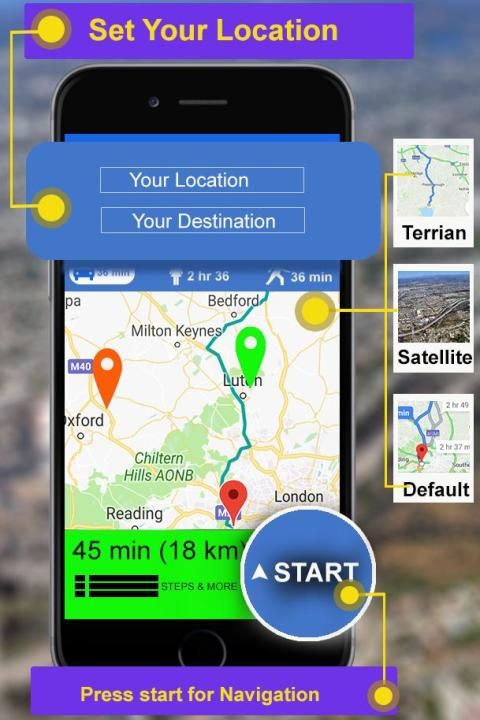 If you want to go alone abroad the first time, no need to be worried, just Open world Map navigation app, which is most reliable earth map satellite app for you. You can go to anywhere in the world, if you stop on the highway and road is divided into many link roads you can make easy and shortest live navigation route on 2D route map.