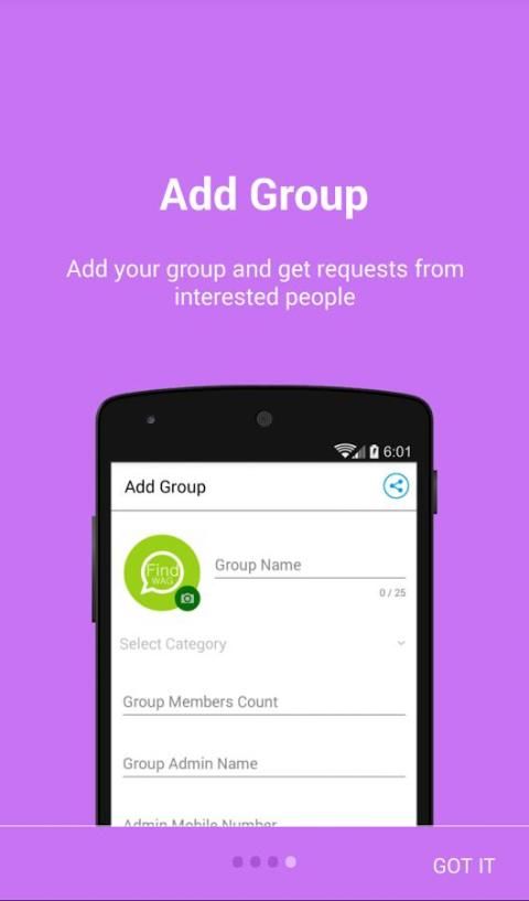 Tambah grup - menambahkan kelompok WhatsApp untuk kategori sehingga orang lain dengan minat yang sama dapat menemukan dan mengirim permintaan add untuk Anda.