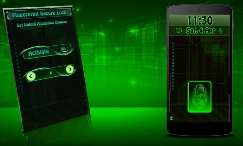 Set ANIMASI COUNTER untuk membuka kunci layar dan oleskan pada sidik jari dan hanya ingat berapa kali garis pemindaian memindai sidik jari Anda dan lelucon dengan teman-teman.