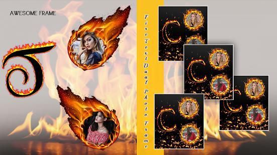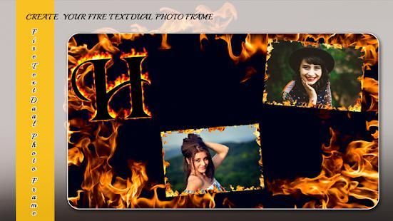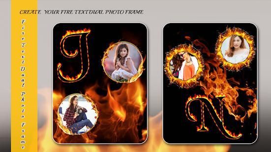 Apply beautiful photos in Fire Text Dual Photo Frame, create memorable photo albums and share in online platforms.. Make your creative photo with this Photo frames. "Fire Text Dual Photo Frame" is a collection of over many double Photo frames, Stickers and Boarders. We can add the text also with customized fonts and colors.