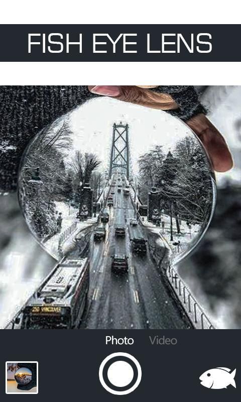 Menggunakan fitur ini Anda dapat membuat gambar kreatif Anda sendiri. Fish Eye Lens Camera adalah alat photo editor memberikan Anda untuk mengambil terbaik wide-angle tembakan terinspirasi menggunakan kamera. Menggunakan aplikasi kamera ini Anda dapat mengatur banyak efek pada foto atau video misalnya: Fisheye Lens Effects.